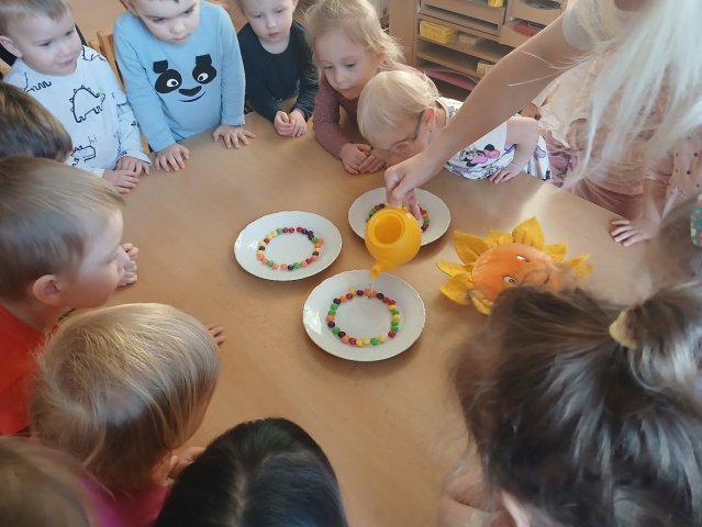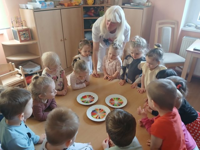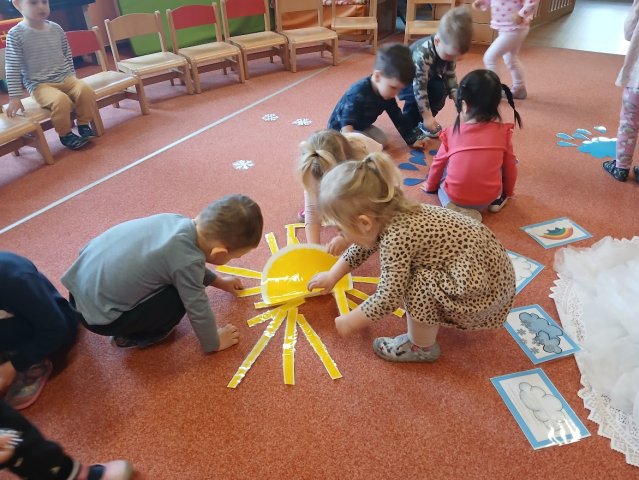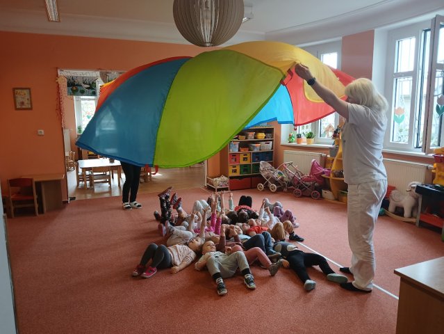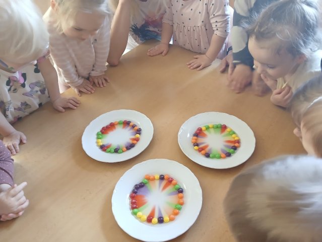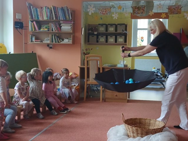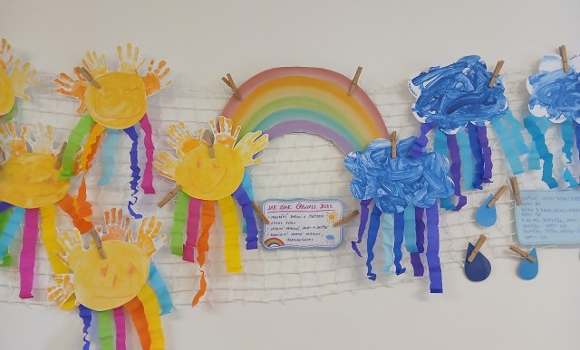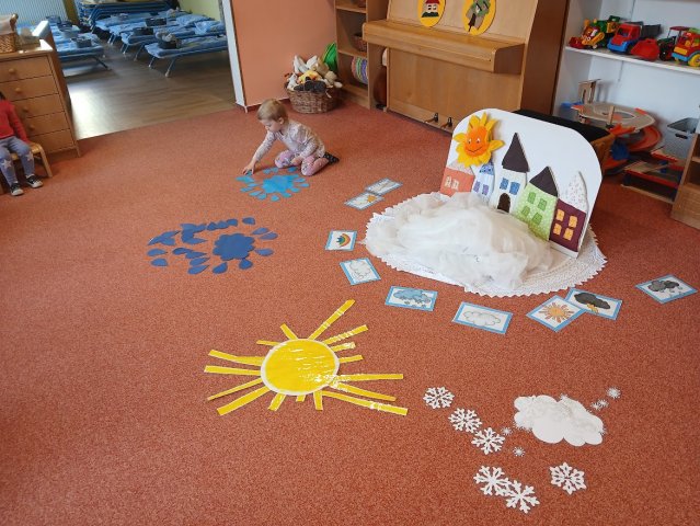teplé dny s jarními bouřkami, kdy se nad obzorem rozzáří nádherná duha. V Kopretince si hrajeme se sluníčkem, větrem, mráčky i bouřkou. Tančíme, zpíváme a s velikým nadšením čarujeme duhu. Děti si vyzkoušely pokus s čarovnými kamínky a vodou. Panečku, to byla krásná duha…