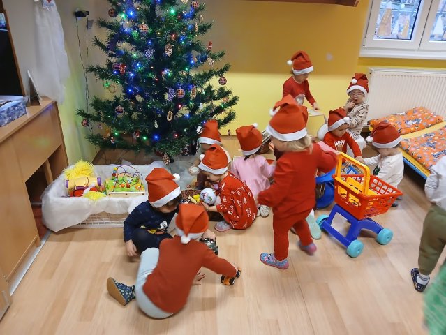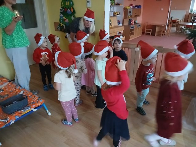 Dnes jsme od rána tušili, že nás čeká radostný den. Tety nám vyprávěly, jak slyšely cinkání zvonečku a to by mohlo znamenat, že okolo školky létal Ježíšek. Nikde, ale
