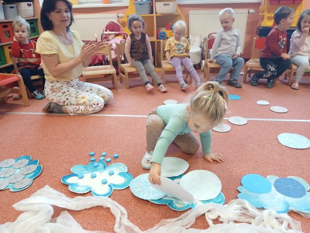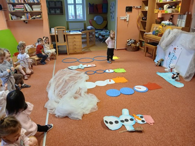 tučňáci, nebo lední medvědi? Na opačné straně zeměkoule se zase sluní… třeba velbloud. Která vločka je menší, která větší? Zpíváme, tančíme, tvoříme a hrajeme krásné zimní hry.