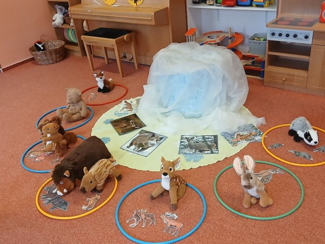 Společně také hrajeme pohádku Mrazíci a zvířátka.