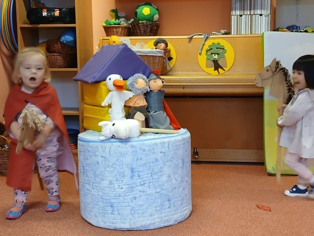 Příběh "O Svatém Martinovi" děti nejprve zhlédly bez zvuku za vyprávění paní učitelky v českém jazyce. Poté v originále. Můžete zhlédnout zde: