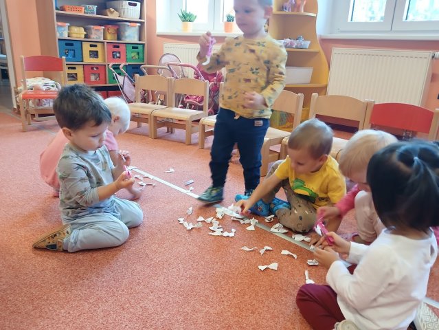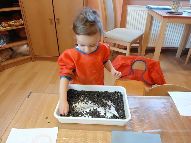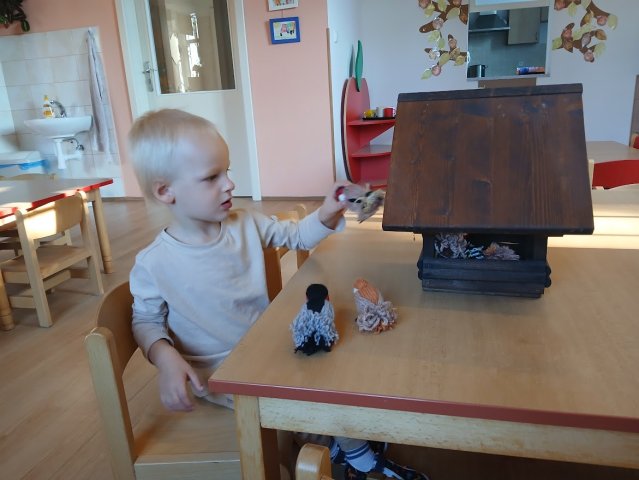překážky, tiskali a nadšeně tvořili ze zrníček a semínek. Venku jsme pak ptáčky pozorovali a sypali jim dobrůtky.