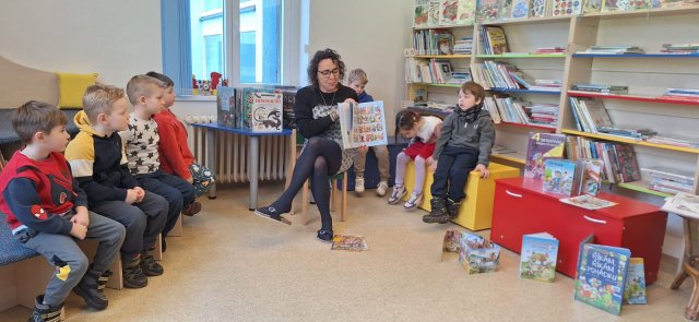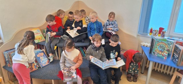 BŘEZEN JE MĚSÍCEM KNIHY. NAŠI PŘEDŠKOLÁCI SE PODÍVALI DO MĚSTSKÉ KNIHOVNY. PANÍ KNIHOVNICE NÁM UKÁZALA, JAK TO V KNIHOVNĚ VYPADÁ, JAKÉ MÁME DRUHY KNIH A JAK S NIMI ZACHÁZET. DĚTI SI MOHLY KNIHOVNU I KNIHY PROHLÉDNOUT. DĚKUJEME PANÍ ZEMANCOVÉ, ZA HEZKÉ DOPOLEDNE PRO DĚTI.