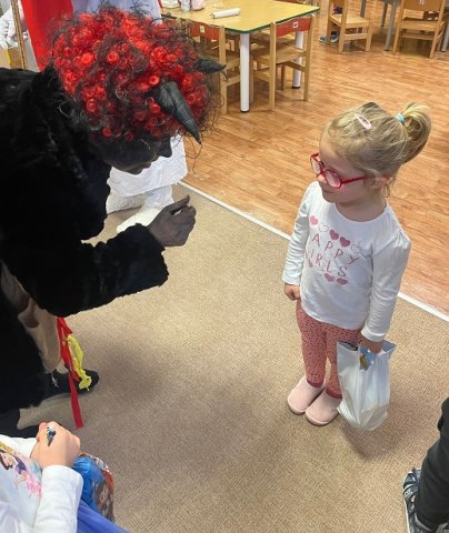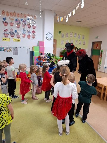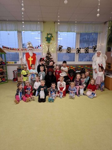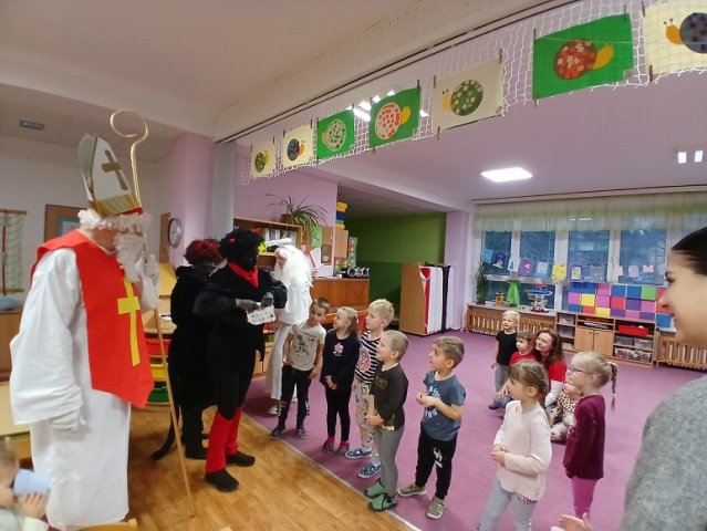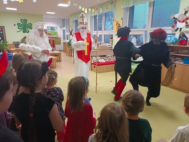 V pátek nás přišel navštívit Mikuláš, anděl i dva čertíci, kteří nebyli ale vůbec zlí! Stavili se u nás po cestě, protože hledali Mikuláše s andělem. Někde se jim po cestě ztratili a děti měly za úkol, že až je potkají, tak zavolají na čertíky. Nakonec se našli a děti pověděly v každé třídě básničku nebo zazpívaly písničku a dočkaly se i balíčku od Mikuláše, ušpinění od čertů pro štěstí a nakonec se většina s čerty skamarádila.