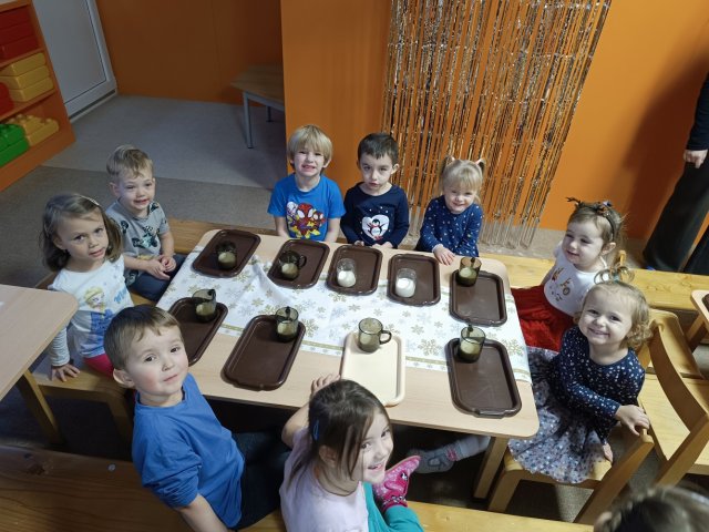 Další narozeninový den jsme si s dětmi uspořádali společnou svačinku v naší tělocvičně. Sešli jsme se celá školka (Čtyřlístek, Houbička, Jahůdka i Borůvka), společně jsme se najedli a společně si to užili.