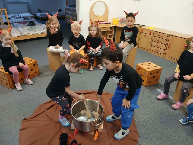 Na začátku prosince nás navštívil Mikuláš s čertíky a andělíčky.