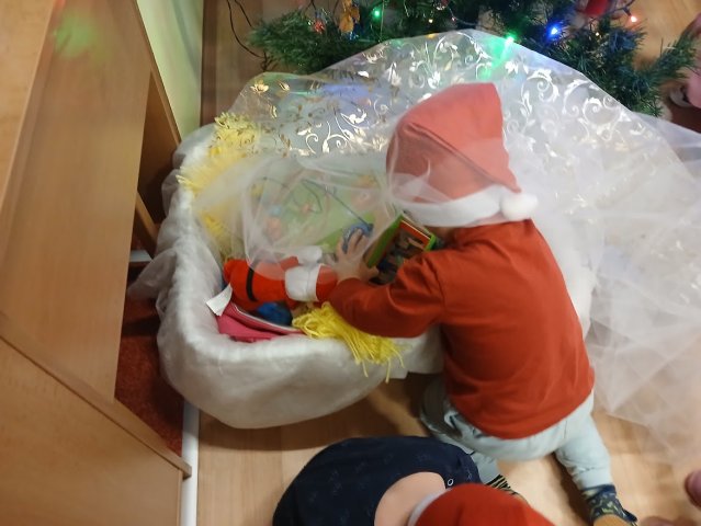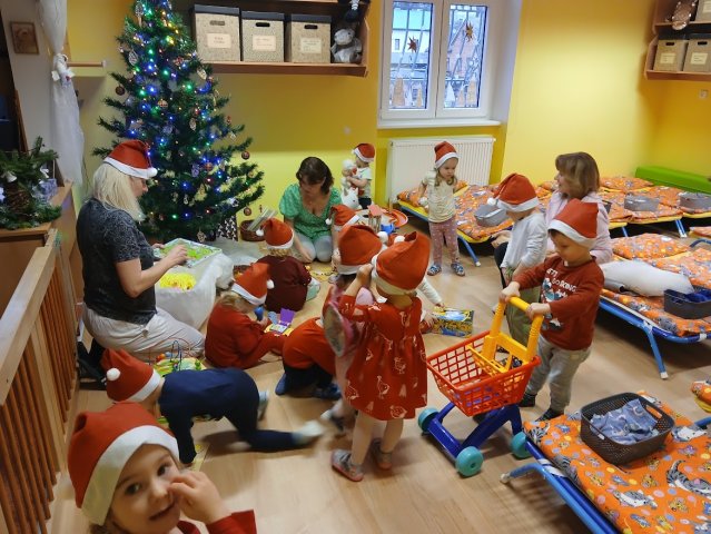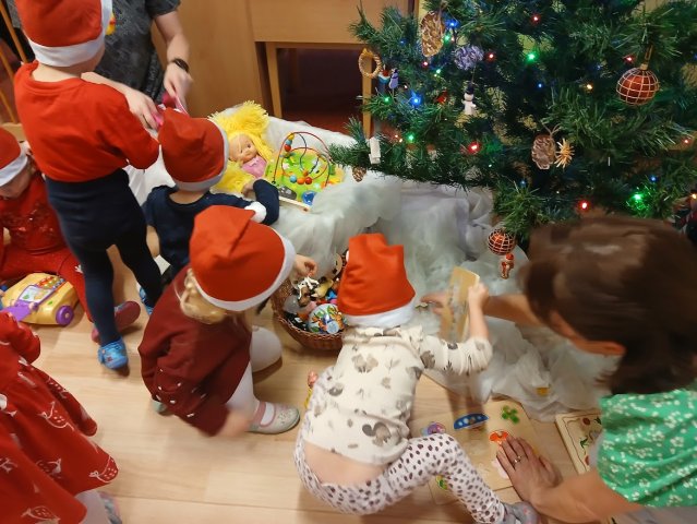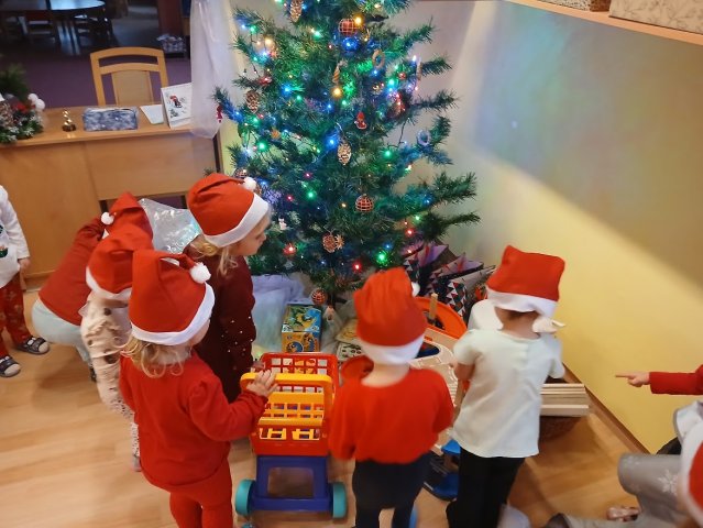 Dnes jsme od rána tušili, že nás čeká radostný den. Tety nám vyprávěly, jak slyšely cinkání zvonečku a to by mohlo znamenat, že okolo školky létal Ježíšek. Nikde, ale
