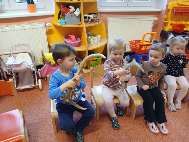 O zvířátkách zpíváme, hledáme je podle stop, stavíme jim pelíšky a zkoumáme opravdové trofeje. Tančíme, malujeme, tiskáme a tvoříme.