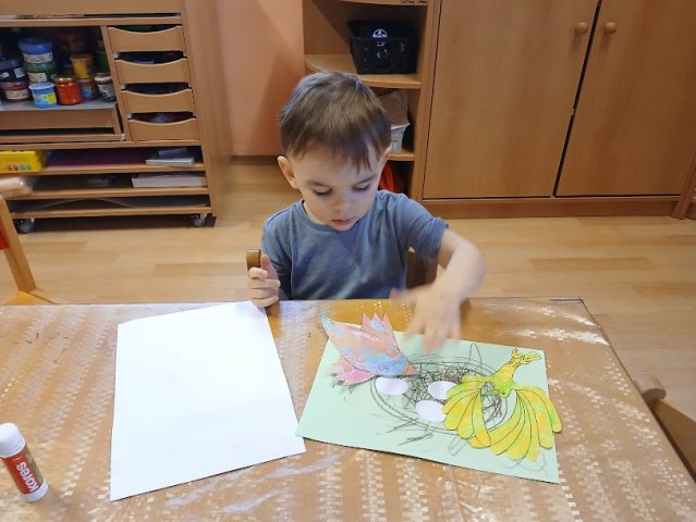 příchod jara. Ptáčkům stavíme hnízdečka a čáp Fanda nás poprosil o nový komín. Na ptáčky si hrajeme, cvičíme s nimi, zpíváme, tančíme i tvoříme.