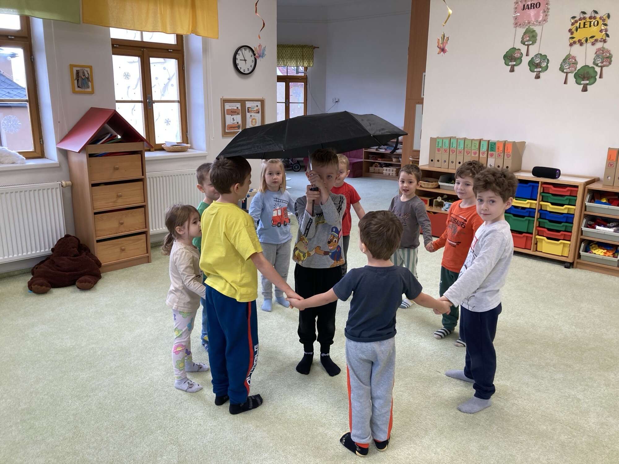 Děti si užily i spoustu tvořivých a hravých aktivit – vyráběly papírové deštníky, stavěly z PET víček mraky, sluníčko i duhu a při hře „na mlhu“ si procvičily hmat. Nechyběly ani pohybové hry inspirované počasím, jako „na vítr“, „na déšť“ nebo „na mrak a sluníčko“.