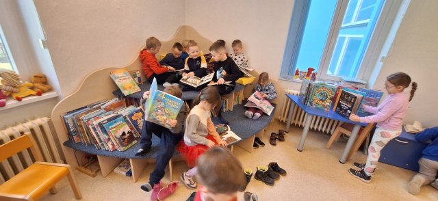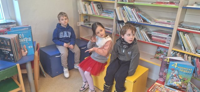 BŘEZEN JE MĚSÍCEM KNIHY. NAŠI PŘEDŠKOLÁCI SE PODÍVALI DO MĚSTSKÉ KNIHOVNY. PANÍ KNIHOVNICE NÁM UKÁZALA, JAK TO V KNIHOVNĚ VYPADÁ, JAKÉ MÁME DRUHY KNIH A JAK S NIMI ZACHÁZET. DĚTI SI MOHLY KNIHOVNU I KNIHY PROHLÉDNOUT. DĚKUJEME PANÍ ZEMANCOVÉ, ZA HEZKÉ DOPOLEDNE PRO DĚTI.