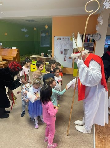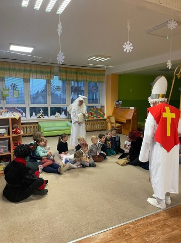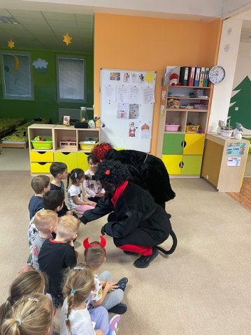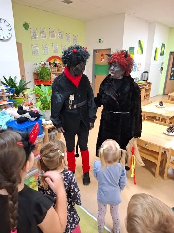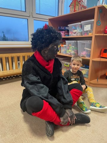 V pátek nás přišel navštívit Mikuláš, anděl i dva čertíci, kteří nebyli ale vůbec zlí! Stavili se u nás po cestě, protože hledali Mikuláše s andělem. Někde se jim po cestě ztratili a děti měly za úkol, že až je potkají, tak zavolají na čertíky. Nakonec se našli a děti pověděly v každé třídě básničku nebo zazpívaly písničku a dočkaly se i balíčku od Mikuláše, ušpinění od čertů pro štěstí a nakonec se většina s čerty skamarádila.