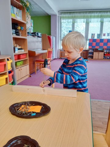 Pro listopad jsme vybrali téma hudby. Často jsme zpívali, řešili sluchové hádanky, užívali si hry na Orffovy nástroje. Byli jsme pozváni na sportovní dopoledne do ZŠ náměstí Míru, kde si děti vyzkoušely různorodá cvičení ve velké tělocvičně. Společný čas jsme také věnovali rozvoji manuálních činností...válení a hnětení těsta, šroubování, zatloukání,...